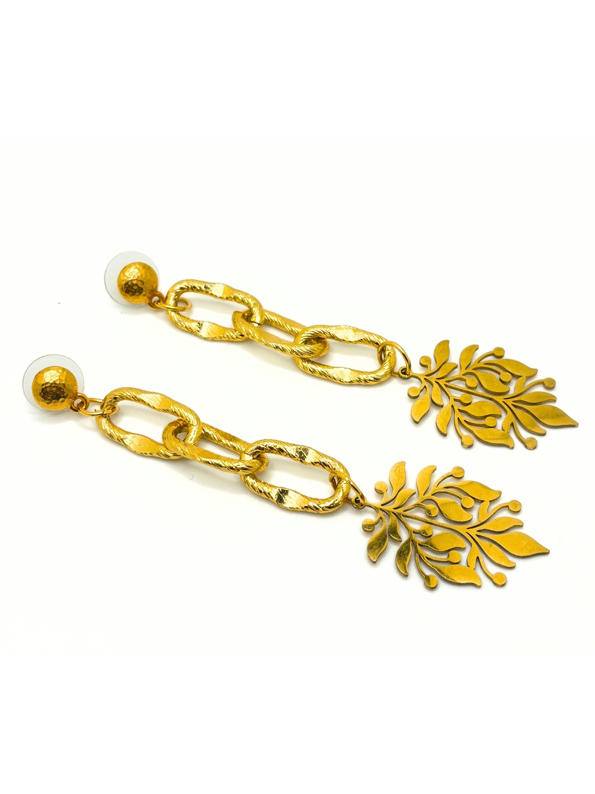 Elevate your style with our Leaf and Berry Long-Drop Earrings from our bold blossom collection. The anti-tarnish chain and stainless steel component ensure these earrings will stay beautiful for years to come. Add a touch of sophistication and elegance to any outfit.