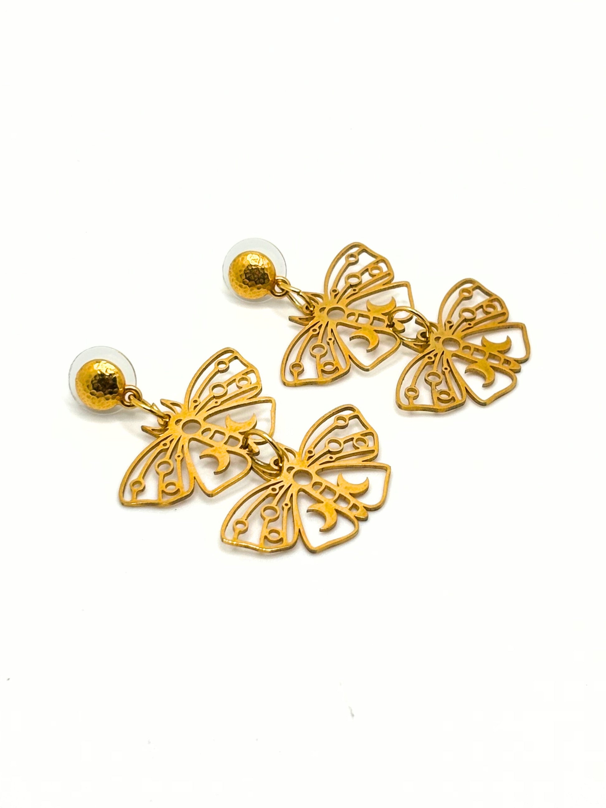Crafted with stainless steel, our Luna Moth Statement Earrings from the bold blossom collection are a must-have for any fashion-forward individual. These earrings make a bold statement while adding a touch of sophistication to any outfit. Perfect for those who want to elevate their style with a touch of edge and flair.